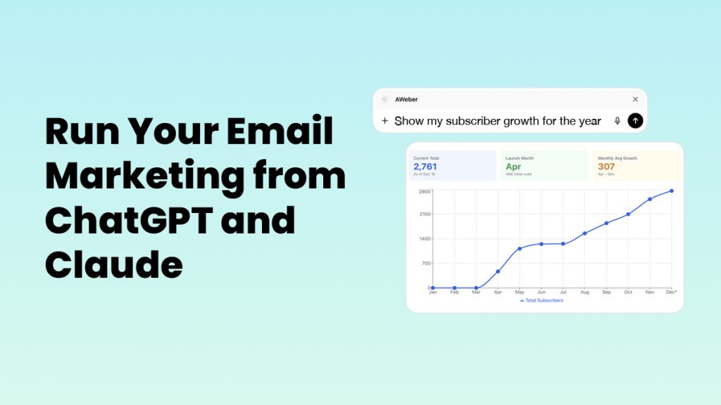 AWeber connects directly to ChatGPT and Claude. Link your account once. Then manage everything conversationally. Write campaigns, analyze performance, manage subscribers, create forms—without switching tools.